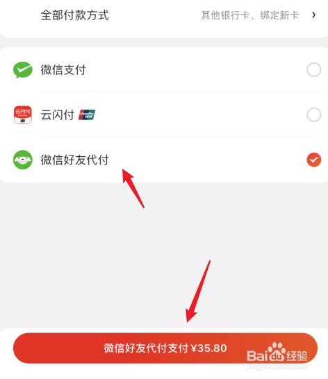 选择微信老友代付的选项后,点击下方的代付选项。