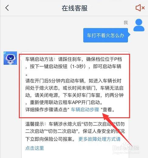 最后,发送“车打不着火怎么办”后,我们就可以看到具体的操作方式了。