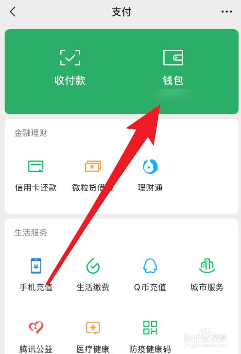在支付页面,点击“钱包”。