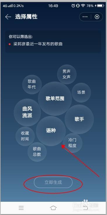 筛选出来的歌曲可以点击生当作歌单。