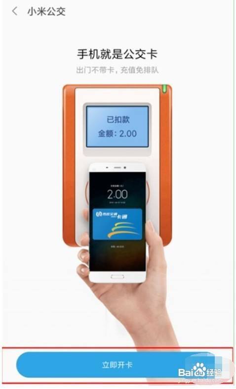 若是是小米公交新用户的话,会呈现【当即开卡】的过渡页面,点击“当即开卡”,进入公交卡开通页面。