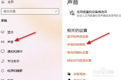 之后点击声音,点击声音节制面板。