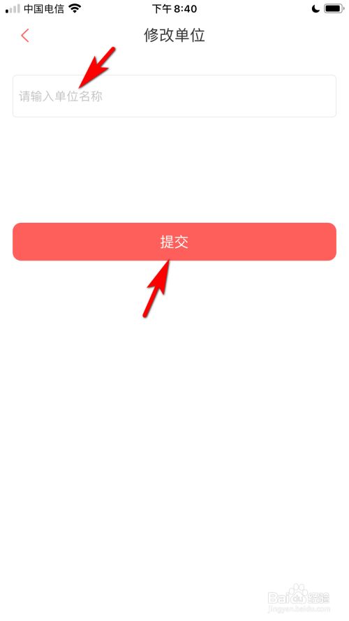 在文本框中填写单元名称后,点击提交的选项即可填写本身公司单元的名称。