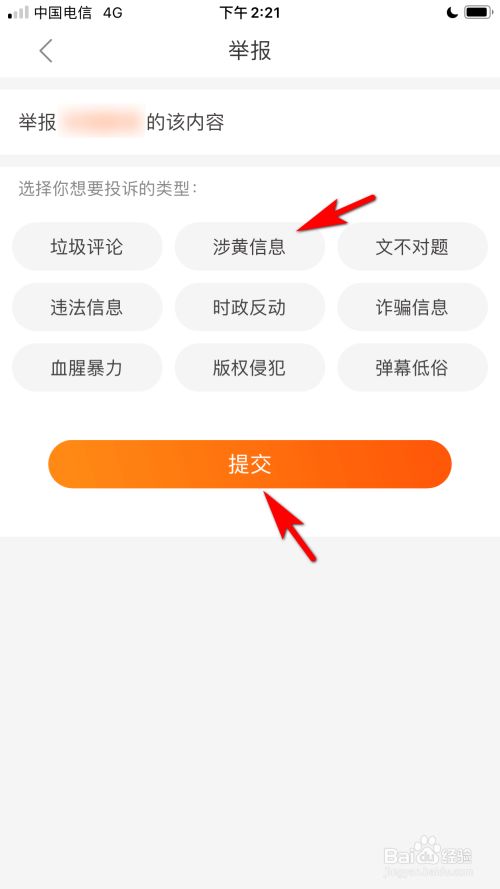选择投诉的类型选项后,点击下方提交的选项即可举报视频创作者。