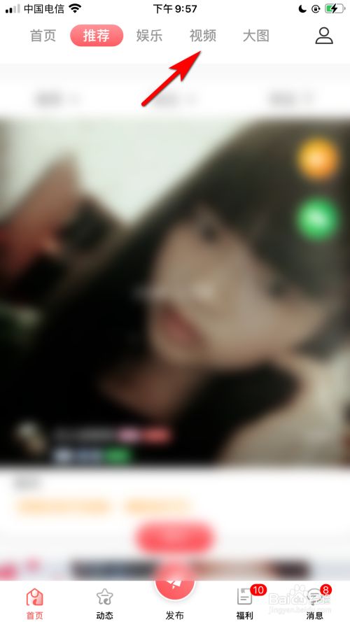 进入APP首页后,点击上方视频的选项。