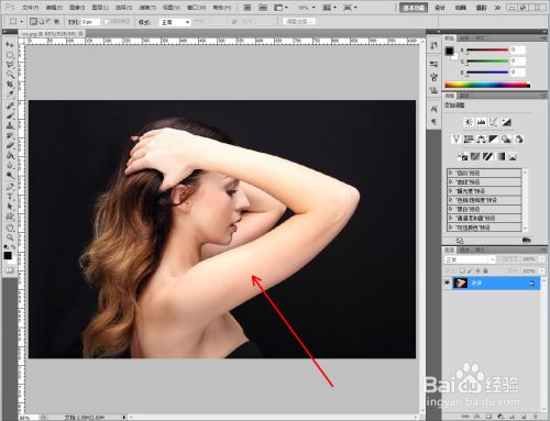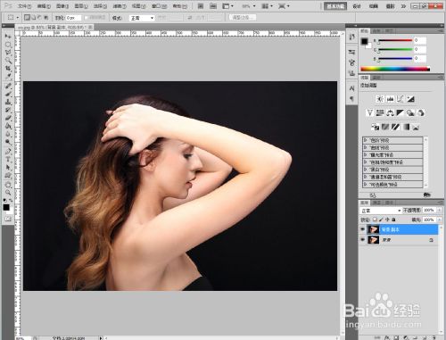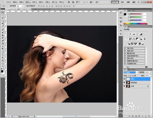 导入一张要建造纹身的人物图片,将图片图层拉至【新建图层】图标处,新建一个图层副本;