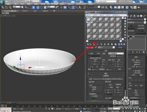 点击【材质编纂器】,建立一个名为:青花瓷盘的材质球并按图示设置好漫反射、反射、折射的各个参数后,为【漫反射】添加一张青花贴图。完当作后,将材质球附加给盘子模子;