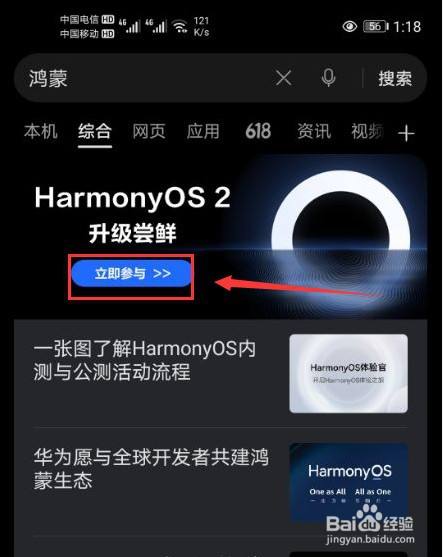 点击当即介入鸿蒙系统进级尝鲜(图片中圈红的部门)