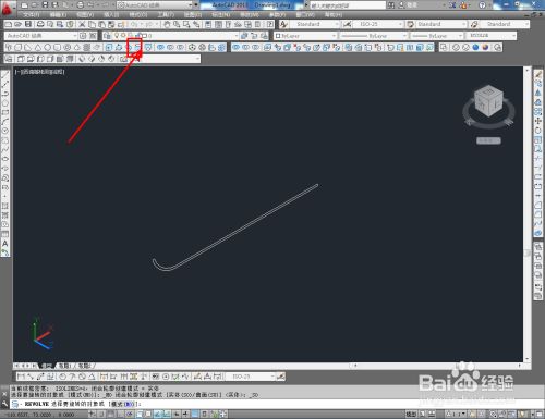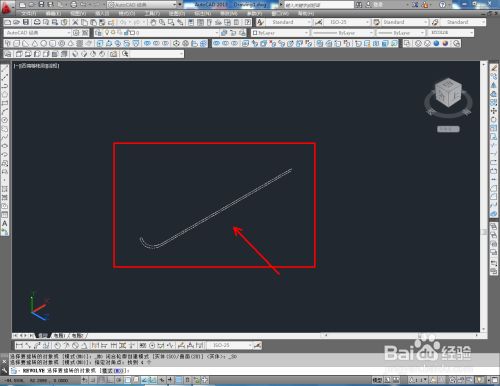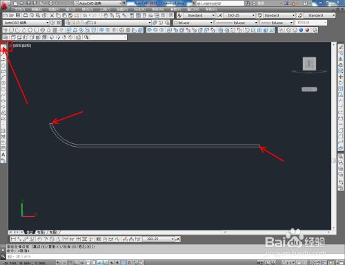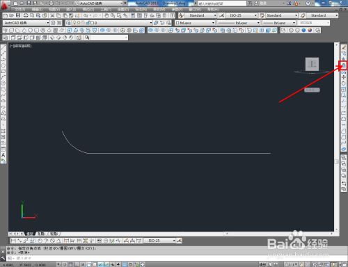 切换到前视图,点击【直线东西】按图示绘制出一条直线后,点击【圆弧东西】以直线端点为起点绘制出圆弧线(如图所示);