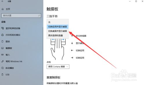 我们可以经由过程更改“轻扫”字样下方下拉框来更改三指手势所对应的操作。