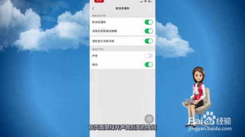 4、在页面里打开声音后面的按钮。