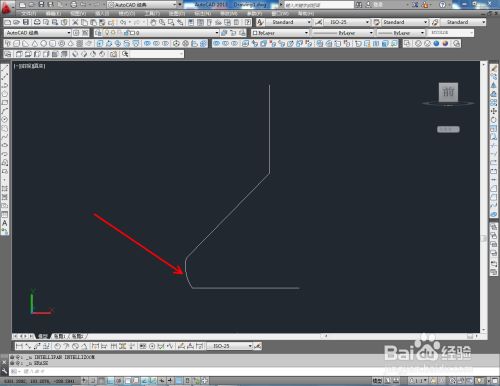 切换到前视图,点击【直线东西】按图示绘制出图示三段直线后,点击【圆弧东西】,绘制出图示圆弧线并将直线毗连起来;