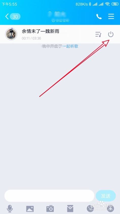 接下来在打开的老友聊天窗口,点击一路听歌的封闭按钮。