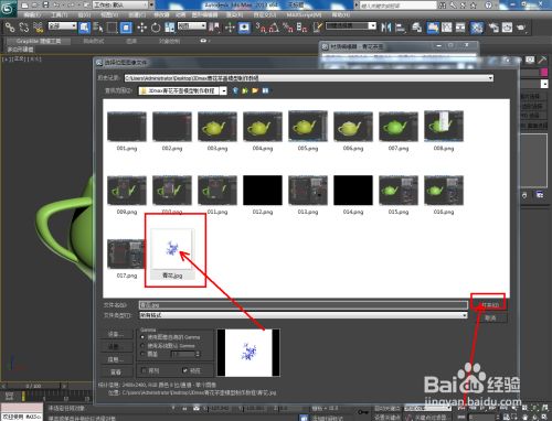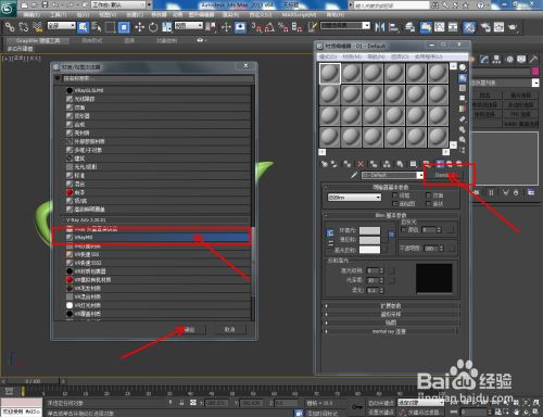 点击【材质编纂器】,按图示建立一个白瓷材质球并按图示设置好漫反射、反射、折射的各个参数。完当作后,点击【漫反射】右边的小方框并添加一张青花贴图;
