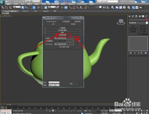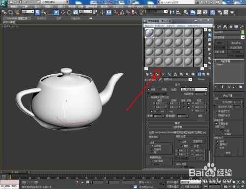 点击【茶壶】,在图示作图区域建立一个茶壶根本模子并设置好模子的各个参数(如图所示);