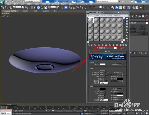 打开【材质编纂器】,建立一个名为:青花茶托的材质球并按图示设置好漫反射、反射、折射的各个参数后,点击【漫反射】右边的小方框并添加一张青花贴图;