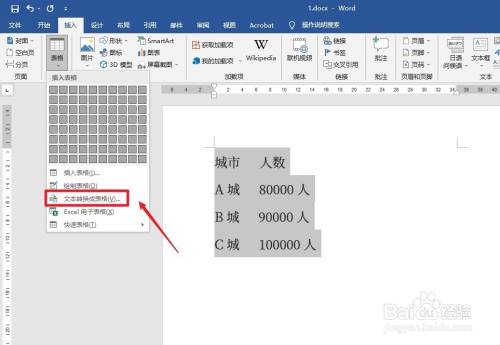 弹出白色框,点击【文本转换当作表格】。