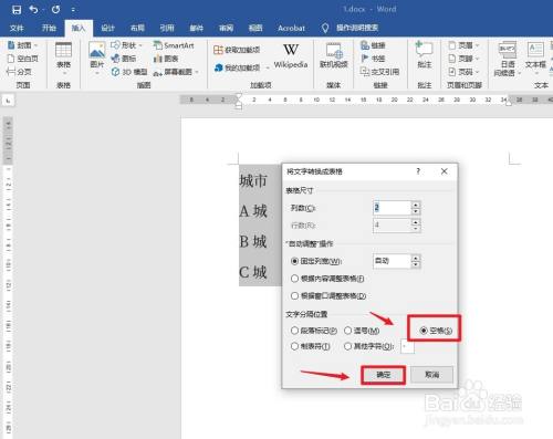 弹出窗口框,选择空格,点击确定。