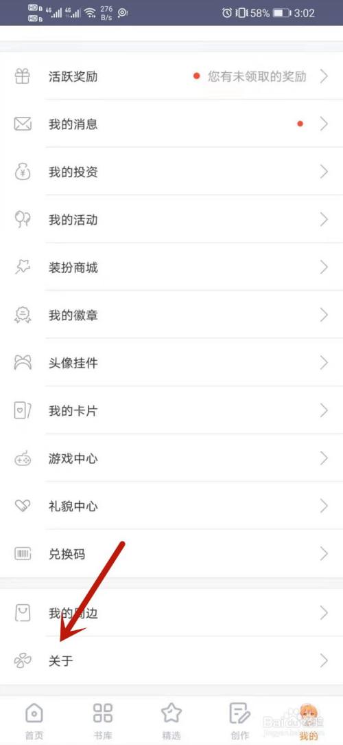 END进入我的界面,点击关于。