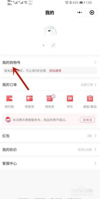 进入我的界面,点击我的购物号。