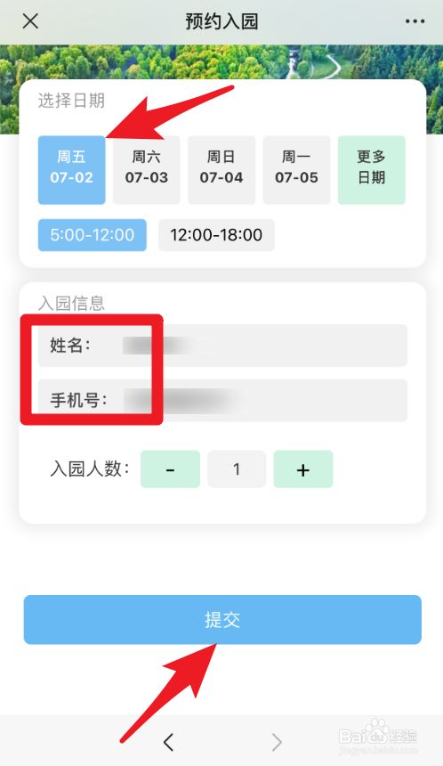 设置入园时候后,输入“小我信息,点击“提交”按钮,即可。