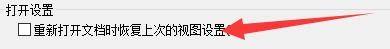 在“杂项”窗口中,将“从头打开文档时恢复前次的视图设置”勾选上