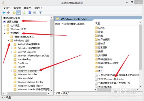 在策略组里打开以下路径:计较机设置装备摆设--->办理模板--->windows组件--->windows Defender