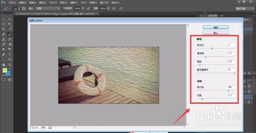 如下图,点击【油画】,跳出下图窗口,我们需要按照预览结果自行设置好画笔结果。