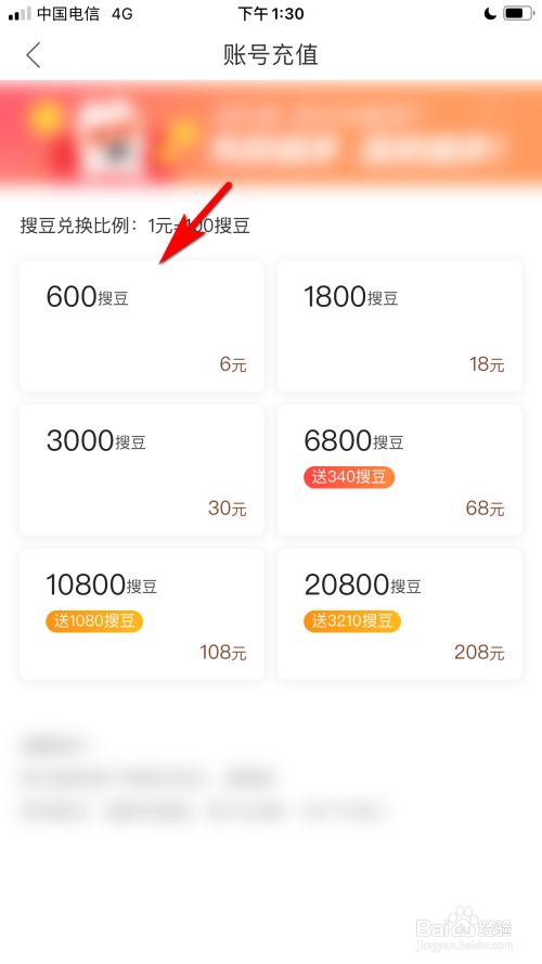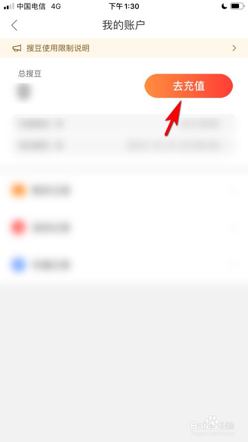 进入我的账户后,点击总搜豆的选项后方去充值的选项。