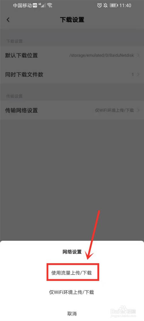 在弹出的窗口点击【利用流量上传/下载】即可。