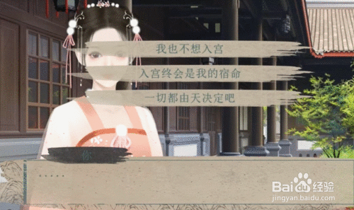 工具/原料vivoy93s安卓8.1.0方式/步骤1登录游戏之后,点击起头游戏。2女本家儿前提:样貌>200、家室高于正五品,样貌>400。3确认好属性后,点击确定。4先判定良知的野心,一起头问她想不想入宫。1.想,则野心高2.走一步看一步,野心中等。3.不想,野心低。5接着选择第二项,入宫。6最后,按照选项和表示就能告竣终局。END