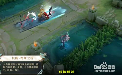 二技术,放出带有标记性的法阵,上方有两只双色锦鲤