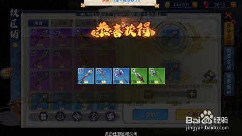 点击“合当作”按钮后,显示获得合当作装备即可。