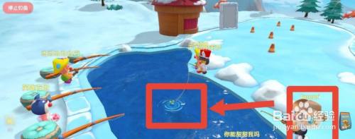 钓到鱼后,使命头顶会有感慨号,这时点击一下鱼钩,鱼塘中会有一个深色的水圈,当鱼在水圈中时,再次点击鱼钩。