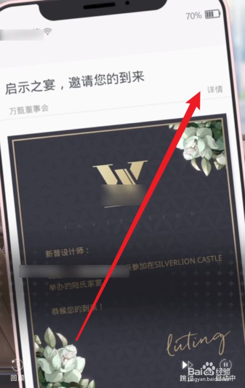 工具/原料苹果iPhone12IOS14.5光与夜之恋1.0方式/步骤1打开游戏,如图所示点击界面空白处起头游戏。2如图所示点击进入【第五章】3如图所示点击【主动播放】剧情对话4如图所示点击查看【邀请函】详情5如图所示点击【窗外】切换场景END注重事项点击查看【邀请函】详情
