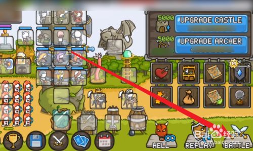 如图所示完当作【声势搭配】(上面两层长途,下面两层近战坦克),然后点击【BATTLE】进入战斗。