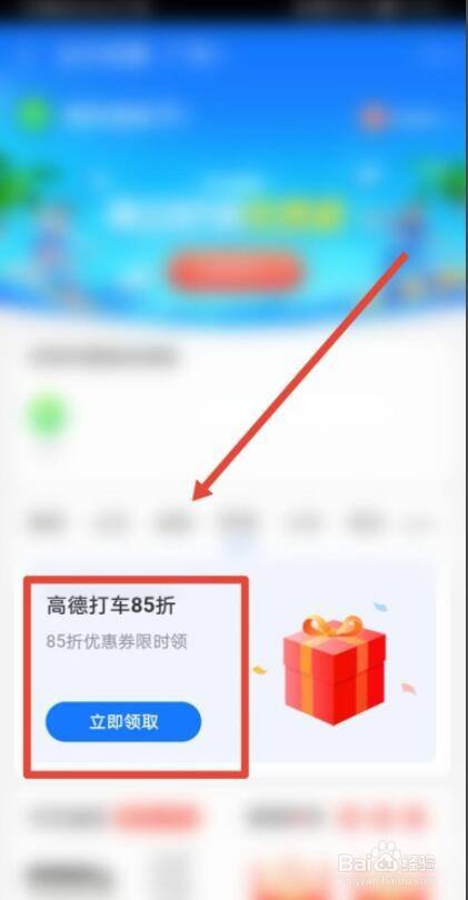 找到高德打车85折优惠券,点击进入领取页面。
