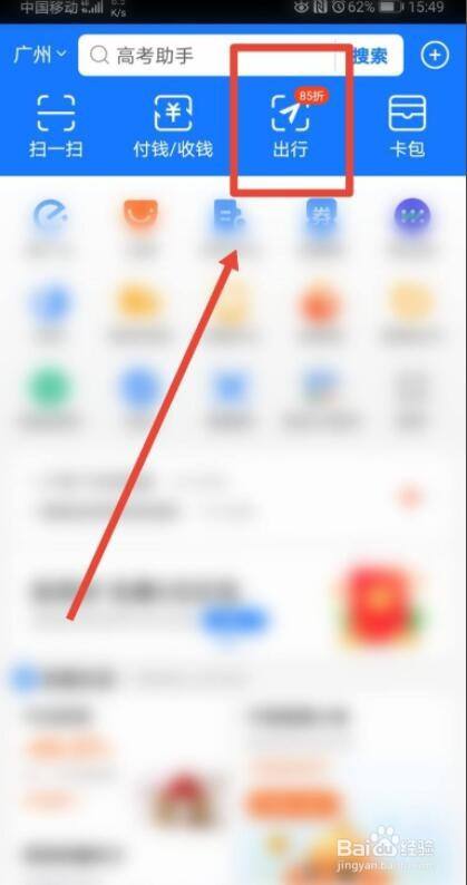 在支付宝首页,打开出行功能。