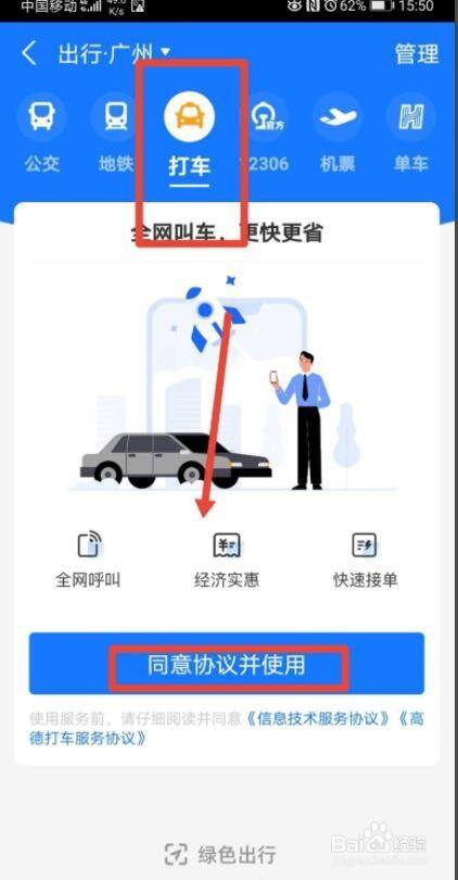 进入打车页面,开通相关和谈。