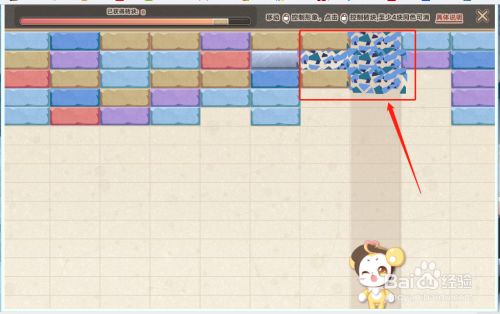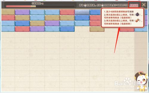 挪动转移砖块,使得四块相邻同色的砖块消弭。