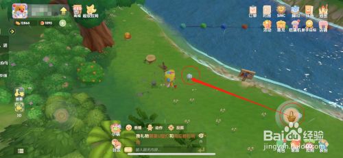 达到浆果森林后四处逛逛,看到橙色的蘑菇就接近它,点击右侧果篮图标进行采摘;