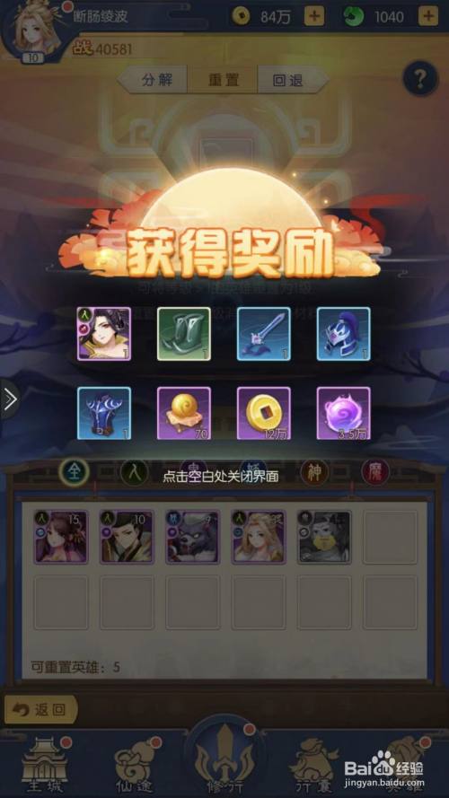 工具/原料苹果 7 PlusiOS 14.4.2少年御灵师 1.1.131.前去轮回殿1在手机桌面中,点击“少年御灵师”游戏图标。2在“少年御灵师”本家儿界面中,点击图中的“轮回殿”建筑物。END2.重置英雄1在“轮回殿”建筑物中,选中英雄,点击“重置”按钮。2在“提醒”界面框中,点击“确定”按钮。3点击“确定”按钮后,获得重置后的英雄和资本即可。END