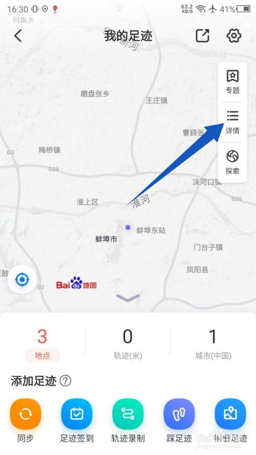 进入萍踪页面后,点击右边的详情选项。