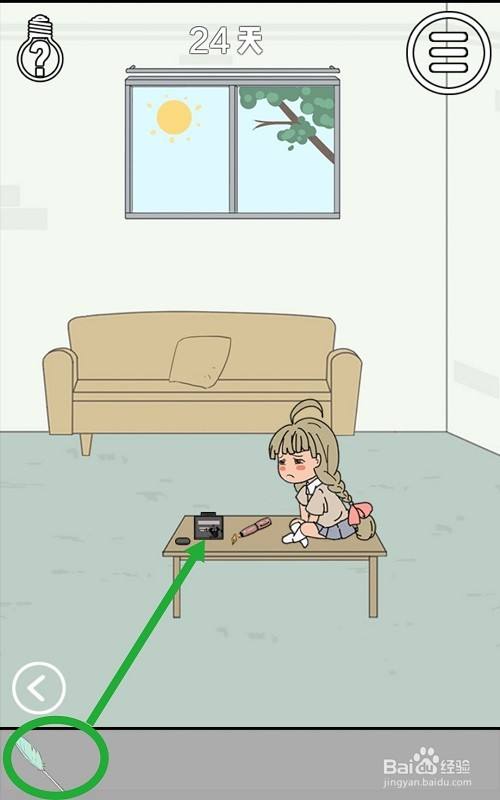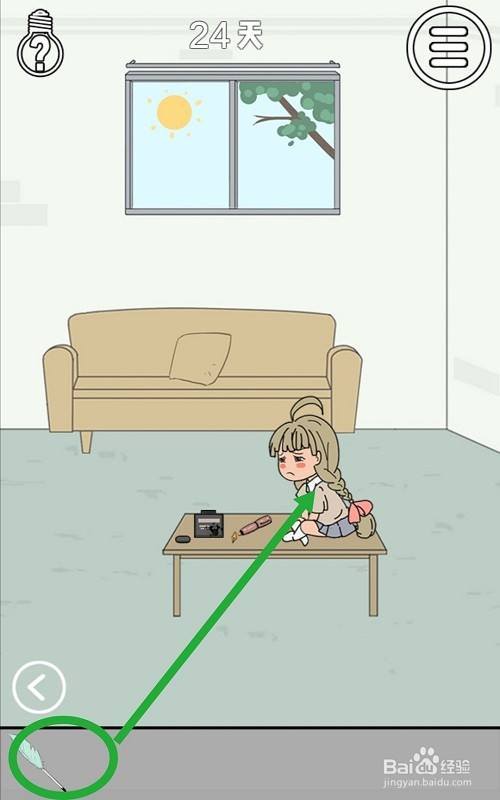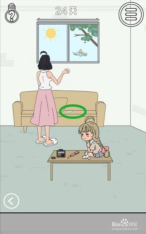 进入右侧,把【烤面包】给妻子吃后,会有小鸟进来,点击沙发上的【羽毛】。