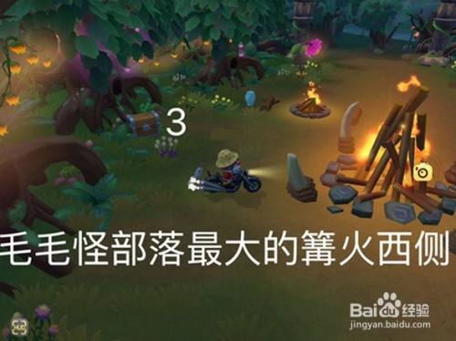 在荆棘森林找到毛毛怪部落,再跟毛毛怪NPC对话,找到毛毛怪部落最大篝火,在最大篝火西部位置即可找到第三个宝箱。