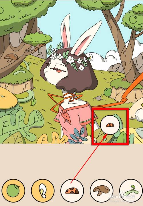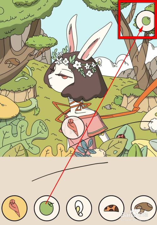 工具/原料iphoneXIOS14.4.2全民找找找1.1.2方式/步骤1领巾:在人物的衣服上。2苹果:在右上角的树上。3蝴蝶:在人物头上的花环上。4瓢虫:在右下角的叶子上。5蘑菇:在图片左边的树上。6抽芽:在蘑菇的下边。7树叶:在抽芽下面的藤蔓上。8豆角:在树叶的下方。END