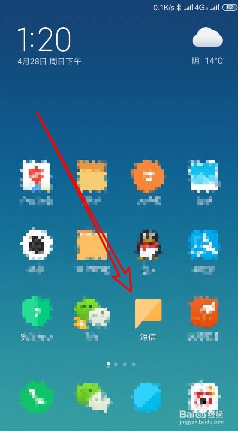 首先在手机屏幕上摆布滑动点击桌面上的短信图标。