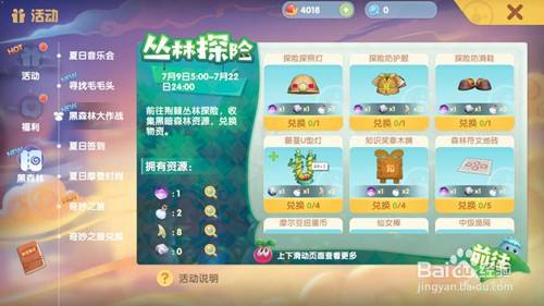 进入黑丛林采摘各类资本,每采摘一次就会扣一颗星星。同时还可以开启宝箱,随机获得种子、摩尔豆,后面即可到活动首页兑换其他的奖励。