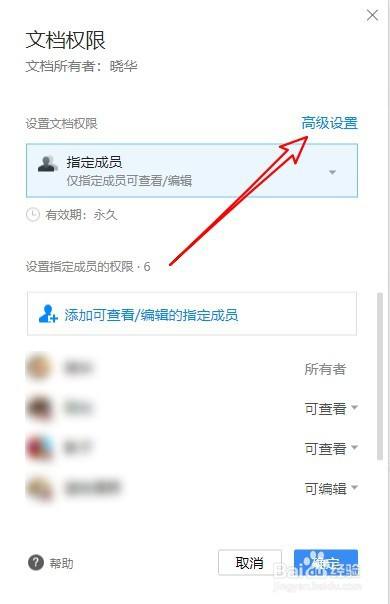 接着在打开的文档 权限菜单中点击高级设置按钮。