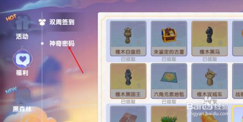 点击神奇密码兑换选项
